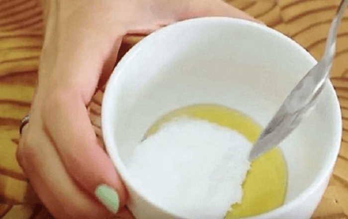 Nummer 2: Häll 2-3 teskedar med bakpulver i en skål och droppa i några droppar olivolja. Blanda sedan om. Skrubba det drabbade området med denna blandning och upprepa detta 2-3 gånger i veckan tills du märker resultat.