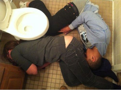 9. De här två finska kompisarna som har däckat tillsammans på toaletten. I vått och torrt!