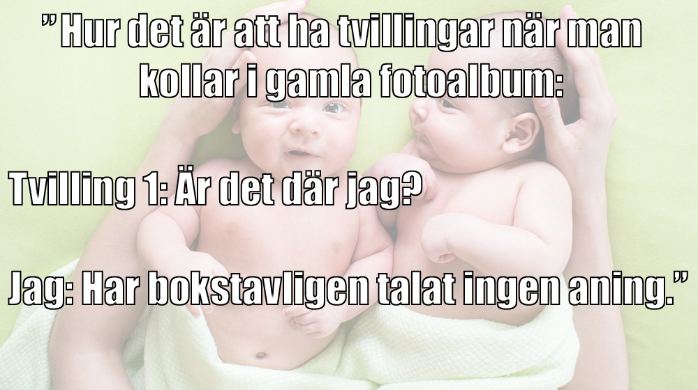 Fast vi som inte har tvillingar kan ju absolut passa på att gotta oss i hur jäkligt de med tvillingbarn har det. Om man man är skadeglad då förstås. Nedanför finner du 15 föräldrar som uttryckt det mest roliga apropå sina tvillingar, och det är verkligen hur kul som helst!