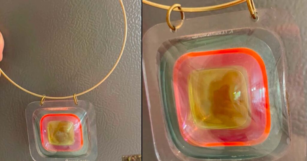 När den unga konstnären tittade på deras urval, snubblade den över ett ”mycket stort och genomskinligt halsband”. Hon föll direkt för den och valde att köpa den direkt, avslöjar hon i en video på TikTok.