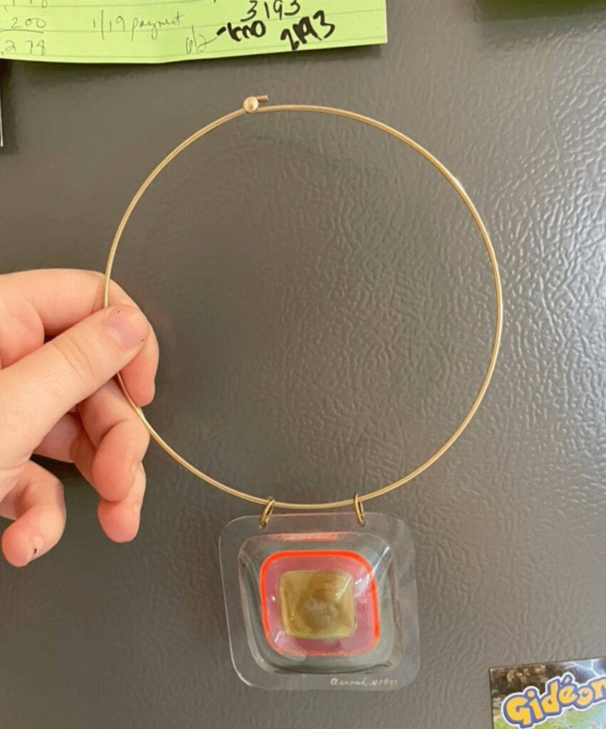 På så sätt lyckades hon ta reda på att halsbandet gjordes av konstnären Aaronel deRoy Gruber. Hon hittade andra verk av den välkände konstnären som var väldigt lik hennes nyinköpta halsband.