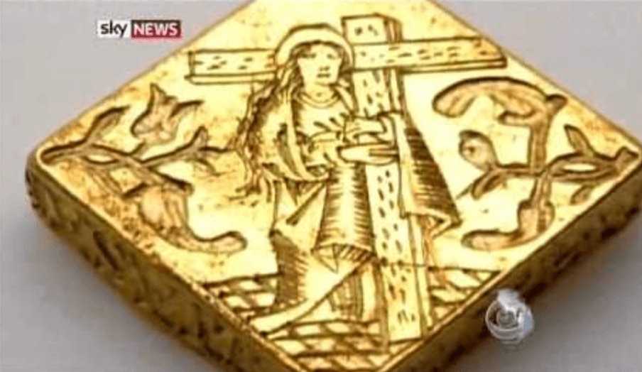 Skatten vägde 8,68 gram, var 73 procent guld och hade en gravyr av Jungfru Maria som håller ett kors.