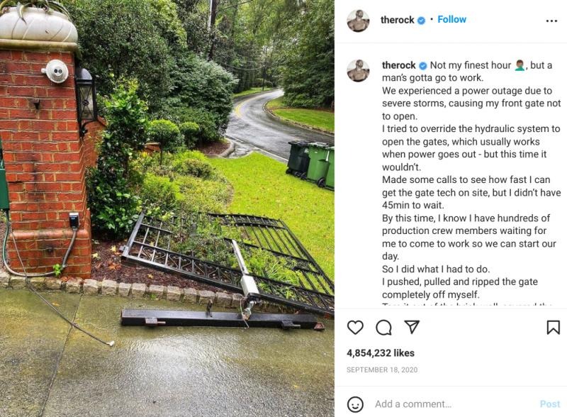 Han har tidigare visat styrkan i sina muskler under inspelningen av ’Red Notice’ när han delade ett inlägg på Instagram där han förklarade att han var tvungen att slita upp grinden och gångjärnen med sina bara nävar eftersom det inte gick att öppna och han skulle komma för sent till fotograferingen.