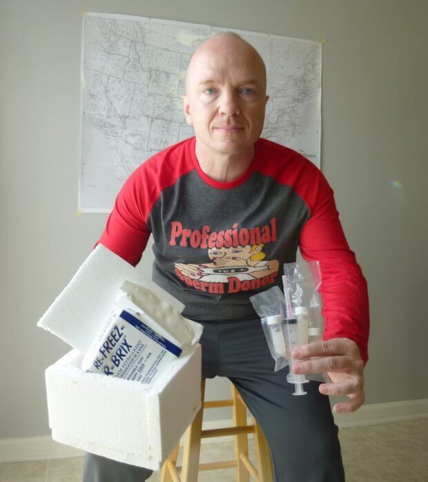 Han erbjuder kvinnor sin sperma, som han själv kallar för ”supersperma”, mot en avgift så att de kan insemineras.