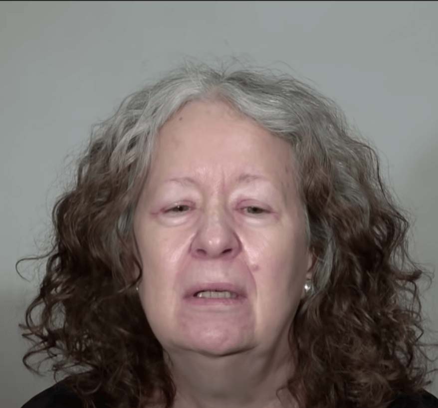 Hennes hår, som en gång varit en sportig frisyr, hade nu fått en grå återväxt och mörkbruna toppar.