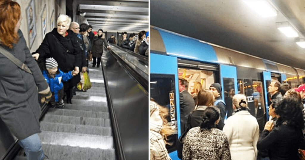 Alla som bor i Stockholm vet att om man tänkt stå och åka med i rulltrappan så ska man ställa sig på höger sida. För vänster sida är ”omkörningsfilen” och ställer du dig där så skapar du kö bakom dig. Så nästa gång du åker rulltrappa i Stockholm och inte tänkt gå upp för den: ställ dig till höger för andras skull.