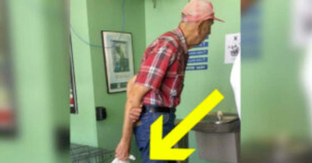Medan kvinnan väntade på att få adoptera en hund kom en äldre man in med en plastpåse i händerna.
