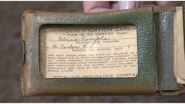 I väskan hittade de ett mycket gammalt studentkort, med Patti Rumfolas namn på.
