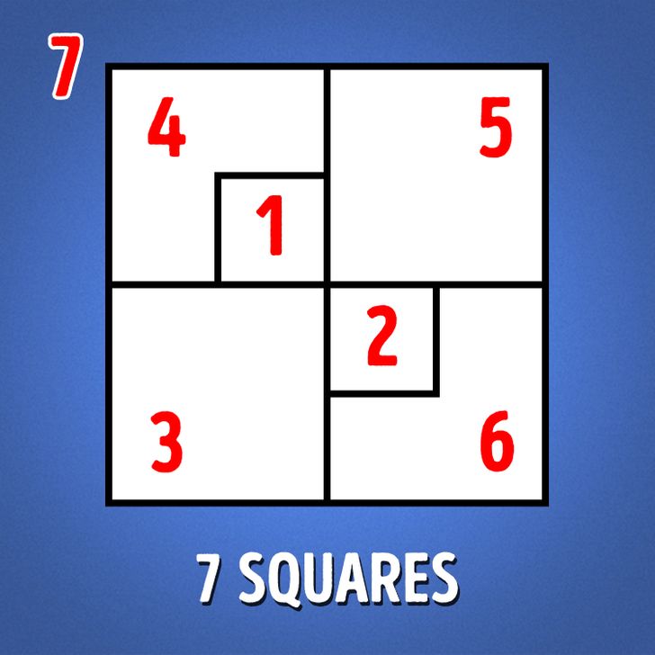 Där har vi alla! Det kluriga med den här bilden är så klart att de flesta inte räknar med kvadrat nummer 7, men som ni ser är även hela bilden en kvadrat i sig.