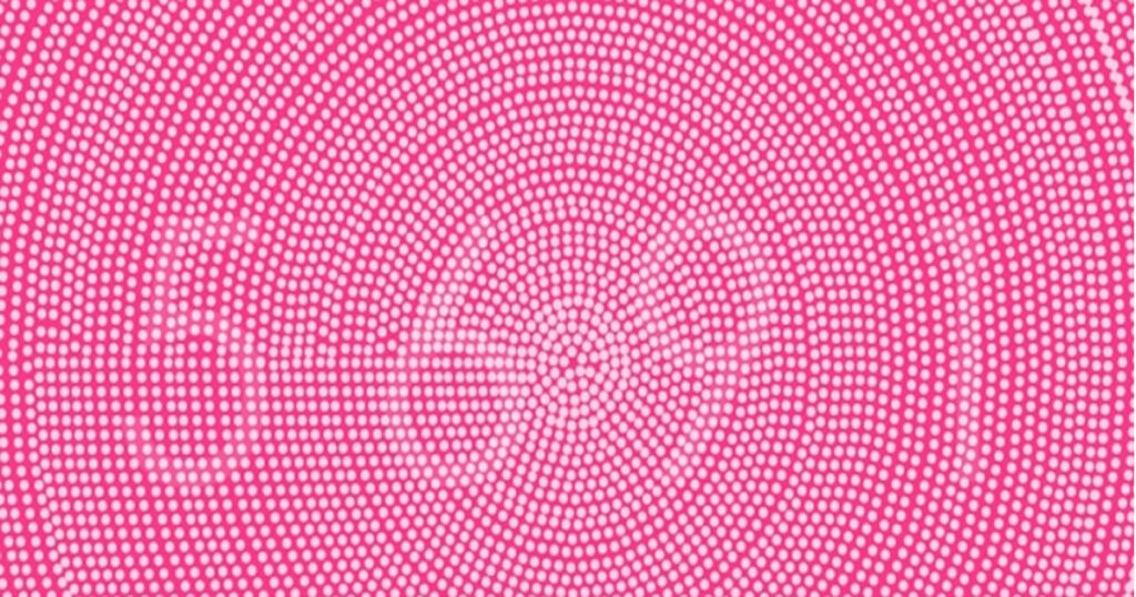 Som ni ser är bilden uppbyggd av en mängd vita prickar mot en rosa bakgrund. Någonstans bland prickarna gömmer sig fyra stycken siffror.