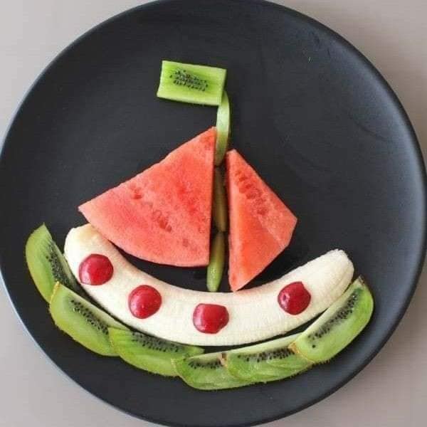 7. Den här kreativa båten är bara för härlig! Full med nyttig och god frukt!