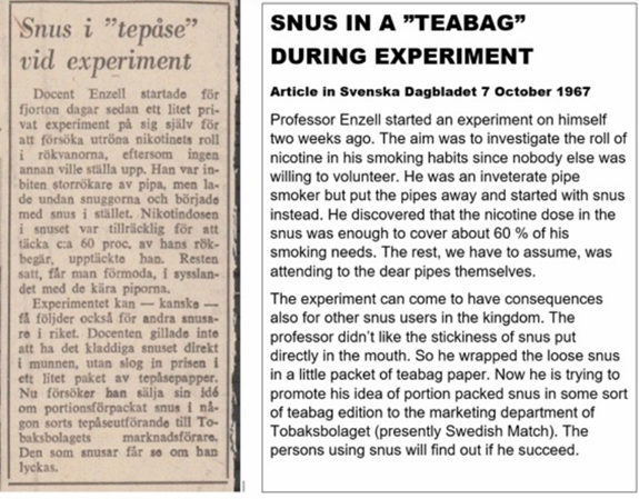Han har haft hjälp av bl.a. tandläkare från Karolinska Institutet i början av sin långa uppfinnarresa. Idag är han bekant med världseliten av forskare som stöder skademinimering, dvs. avsevärt mindre skadliga alternativ till rökning. Han var även den första i världen som fått FDA Tobacco-chefen Mitch Zeller att offentligt erkänna att FDA absolut förstår och erkänner The Swedish Experience med snus.