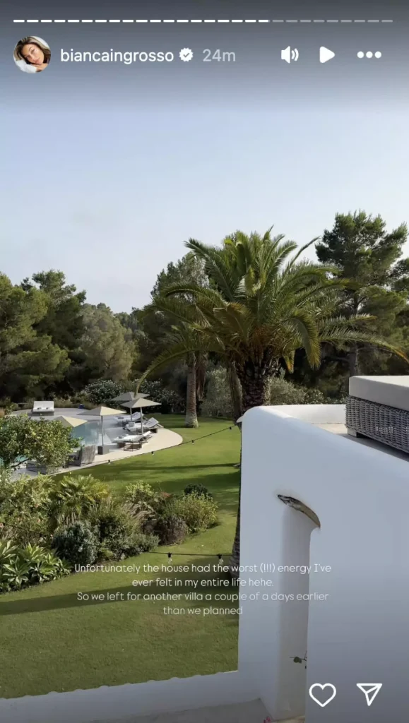 Under sin lyxsemester på Ibiza upplevde Bianca bakslag trots den glamorösa fasaden. Hon beskriver en incident där deras hyrda villa visade sig ha negativ energi, vilket ledde till att de bytte boende tidigare än planerat:
