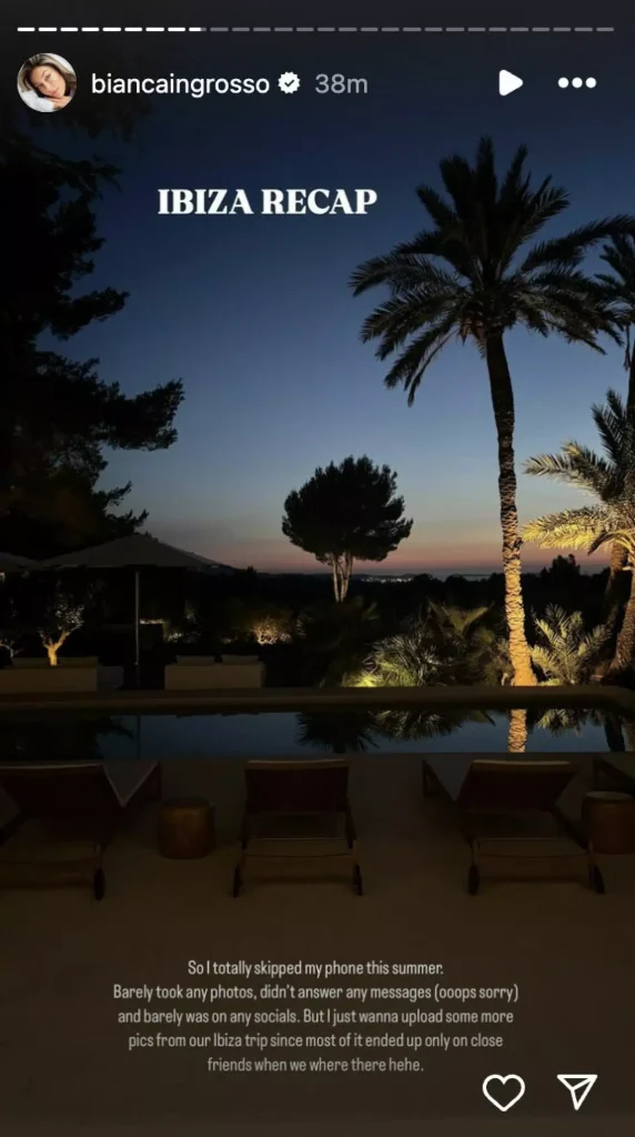 ”Så jag har helt skippat min telefon den här sommaren. Tog knappt några bilder, svarade inte på några meddelande (ooops förlåt) och var knappt på några sociala medier. Men jag vill bara ladda upp några fler bilder från vår Ibiza-resa efter de flesta av dem bara kom upp på min ’nära vänner’ när vi var där hehe”, skriver Bianca Ingrosso.