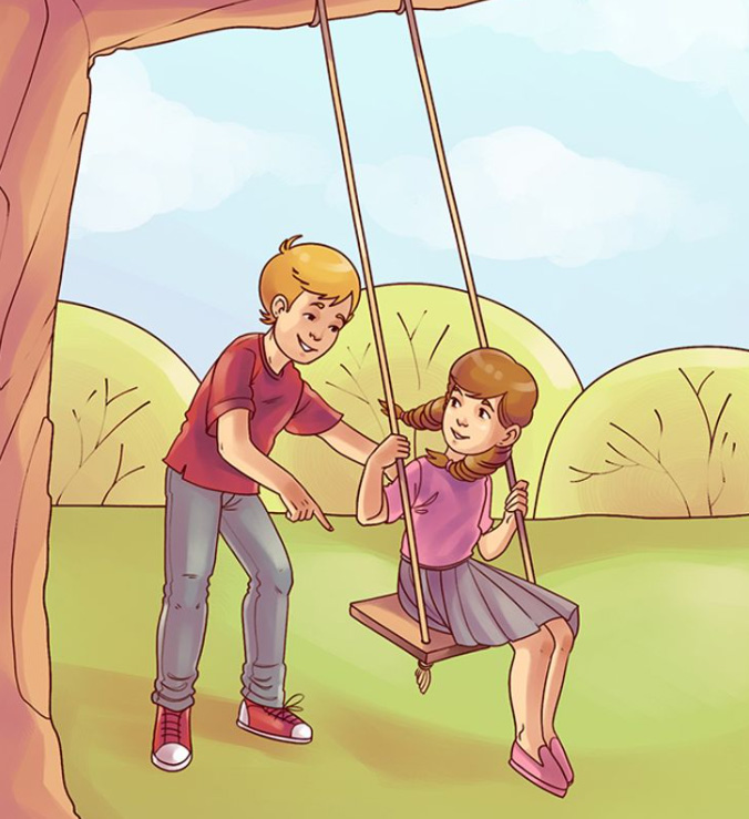 Ta en titt på bilden nedanför. Det förställer en liten flicka som blir gungad av en ung pojke. Inget fel i det. Eller? Bilden ser du nedanför, och ta en noga titt om du kan se vad som är fel!