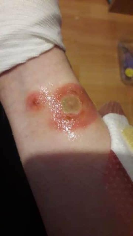 ”Hon måste besöka en sjuksköterska en gång i veckan”, sa den brittiska mamman till tidningen The Sun. ”Avsnittet ägde rum tisdagen den 18 april, men jag upptäckte ingenting förrän dagen efter. När hon kom hem från skolan hade hon stora bölder på armen”, fortsätter hon.