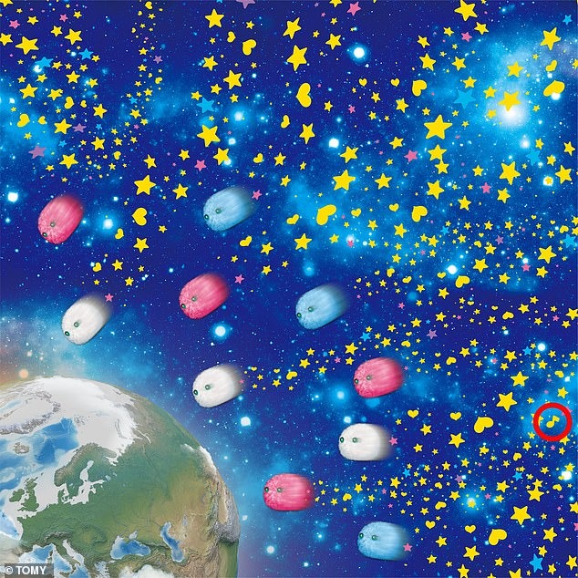 En tredje variant är en bild som tagits fram av leksakstillverkaren TOMY. Här hittar du musiknoten bland alla hjärtan och stjärnor. Jag tycker att den här var den svåraste.