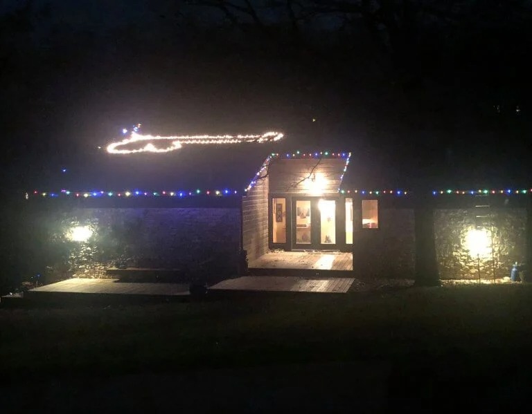 Se den gigantiska belysningen och hör vad Shelby och grannen har att säga här nedanför.