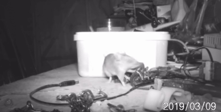 På filmen ser man tydligt att musen kämpar och jobbar hårt för att få ner alla saker i plastlådan. Den lilla musen har gjort detta i ca 4 veckor, och den har ett fast mönster. Det fungerar oftast mellan 00:00 och 02:30.