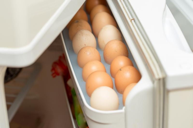 Det är därför en dålig idé att placera äggen i hållaren i kylskåpsdörren, eftersom de utsätts för konstanta temperaturförändringar där.