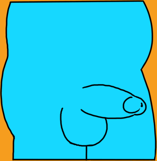 Här har vi penisen med en lätt böjning, som cirka 10-20% av alla män bär på. Böjningen beror enkelt förklarat på ligamenten.