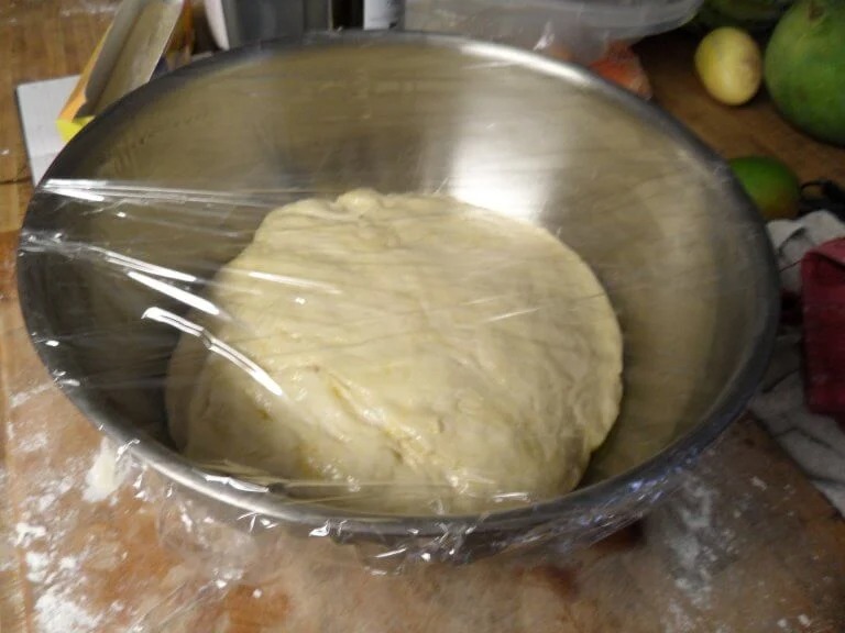 Lägg degen i en skål och täck den med plastfolie och låt stå i 2 timmar.