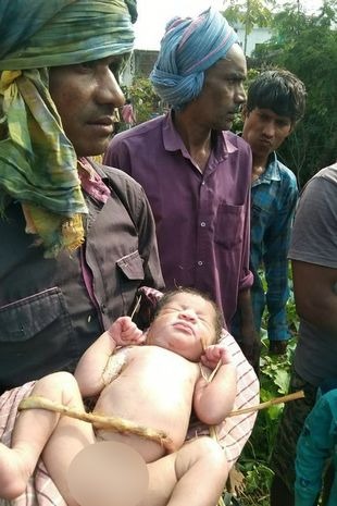 En representant för det lokala samhället, Munnalal Patel, sa att en grupp som gick ut på jobbet hittade den nyfödda.