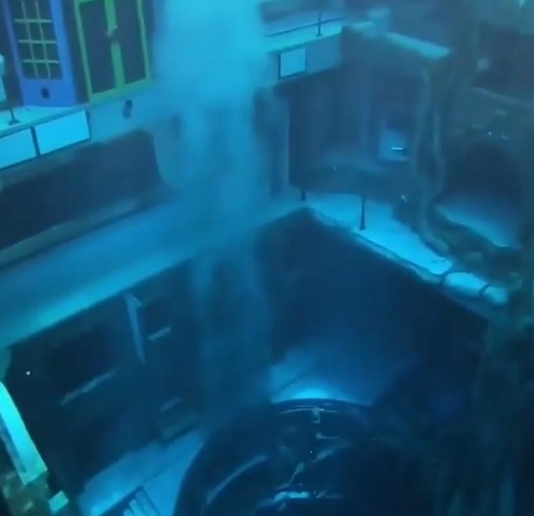 Jo, det ser ut som en relativt vanlig simbassäng vid första anblicken, men när man dyker under ytan upptäcker man att det finns en hel stad i den djupa poolen, som innehåller cirka 14 miljoner liter vatten, eller vad som motsvarar innehållet i sex olympiska simbassänger.