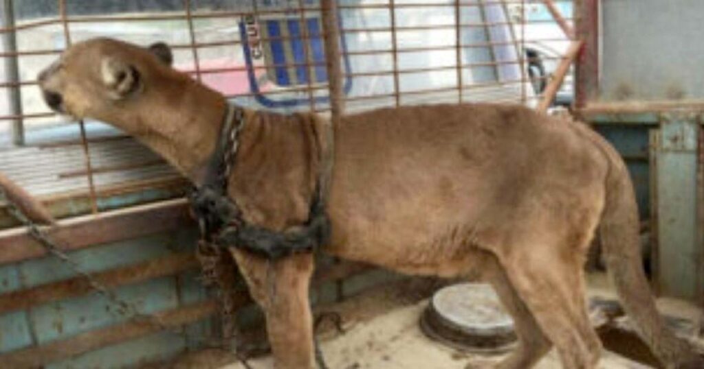 En puma vid namn Mufasa, som hamnade på en cirkus i Peru, gick igenom helvetet när han tvingades tillbringa sina dagar fastkedjad bakom en pick-up i 20 år.