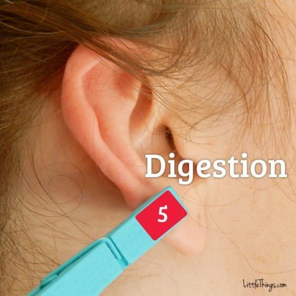 Området strax ovanför örsnibben sitter ihop med matsmältningen och därför kan det hjälpa mot matsmältningsproblem och lätta magsmärtor om du trycker just här.
