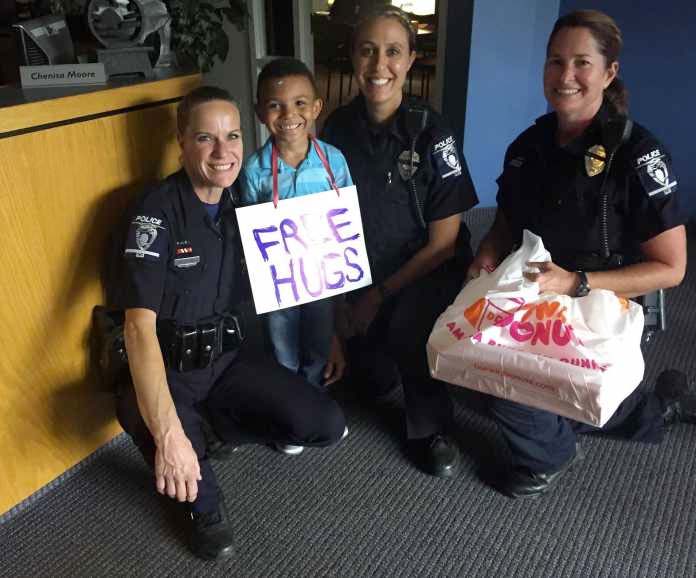 5-åriga Jayden hörde talas om de skadade poliserna på radion i bilen med sin mamma, Deanna Hooker. Han bestämde sig genast för att han skulle svara med kärlek.
