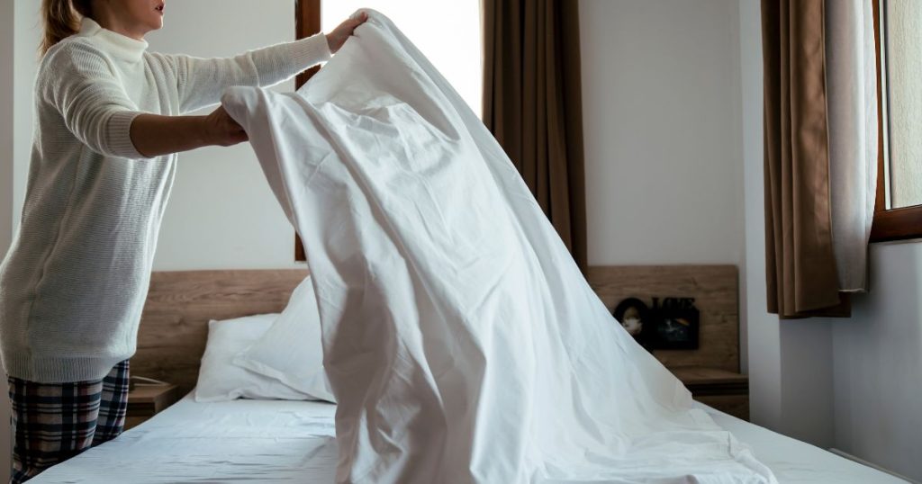 Se till att tvätta sängkläderna minst en gång i veckan, och oftare om någon i hushållet är sjuk. Glöm inte heller att tvätta kuddar och täcken med jämna mellanrum.