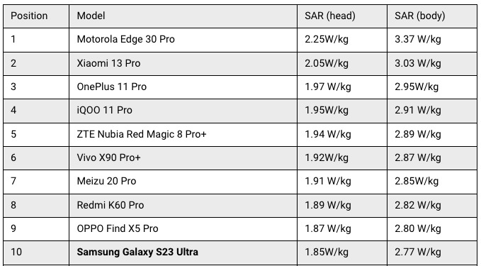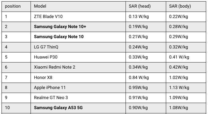 Här är de tio mobiltelefoner med den lägsta SAR-strålningen: