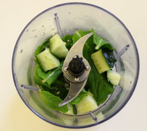 Skölj av gurkan, ingefäran och persiljan. Skala sedan ingefäran och skär den i bitar. Skiva upp gurkan i skivor. Blanda sedan alla ingredienserna i en bunke med hjälp av en mixer.
