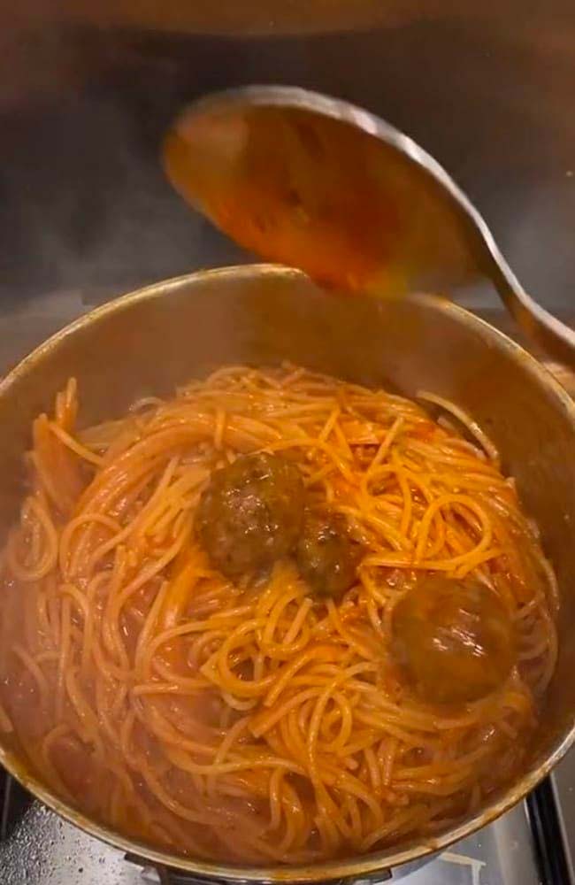 När det börjar koka lägger hon sedan i köttbullar, varefter hon till sist serverar det på ett fat. Många tycker att det är ”genialiskt”, medan andra, särskilt italienare, har blivit rasande.