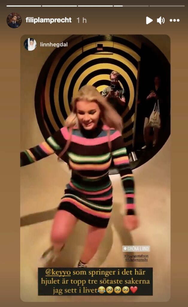 En av destinationerna för dansparen var klassiska ”lustiga huset”. På sin Instagram story skriver Linn att Keyyo som springandes i hjulet är ”topp tre sötaste saker jag sett i livet”.