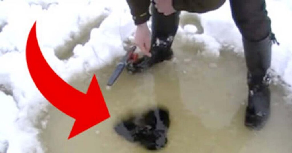 Men vissa människor älskar den här typen av fiske. Gör först ett hål i isen och sätt dig sedan och vänta på att en fisk ska komma och bita i kroken.