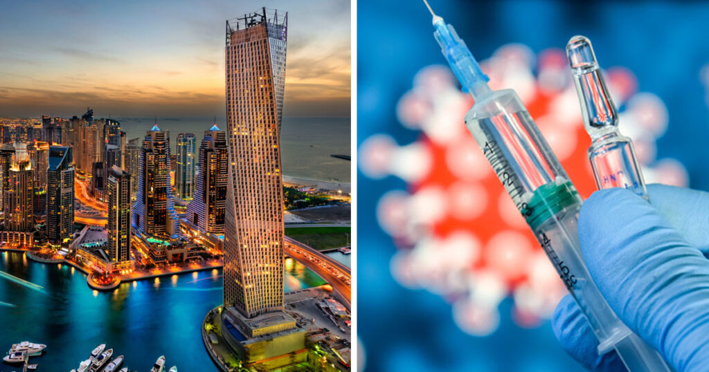 ”Du flyger från London till Dubai, plockas upp med en Bentley på flygplatsen och skjutsas till en exklusiv lyxvilla. Dagen därpå plockas du upp av samma bil, som skjutsar dig till en privat hälsoklinik. Där erbjuds du olika sorters vaccin från läkemedelsföretagen Pfizer, AstraZeneca eller Sinopharm. Efter tre veckor – som du har tillbringat i lugn och ro i din lyxvilla – skjutsas du tillbaka till kliniken och får en andra dos.”