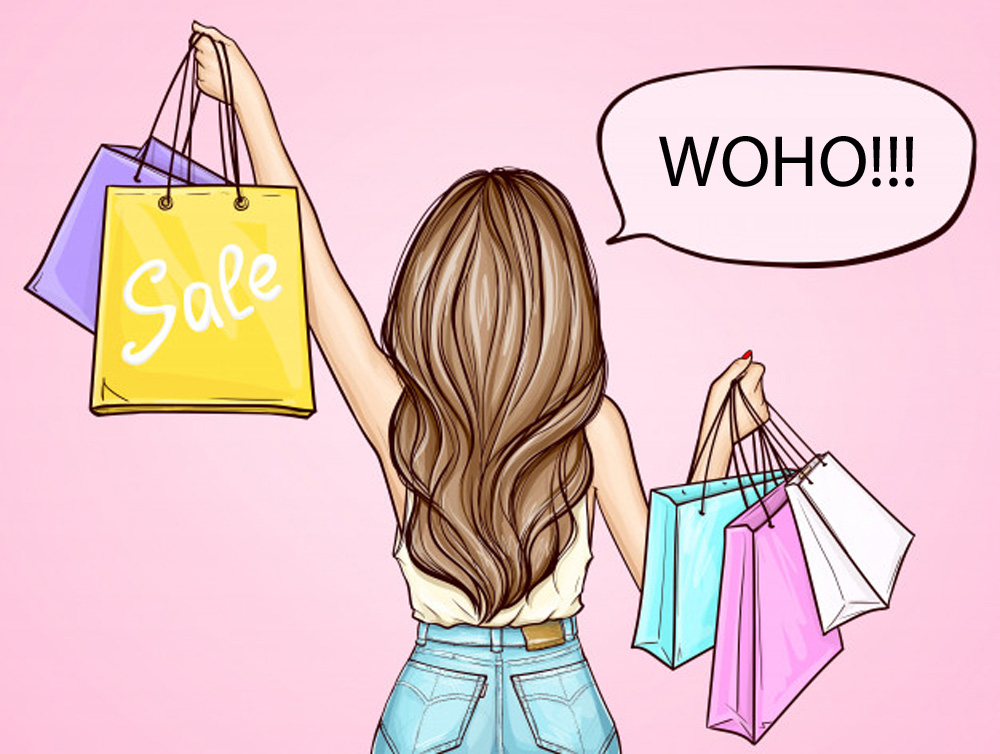 Hon var nästan nära sexuell tillfredställelse av allt shoppande. Med ett jättestort leende sade hon till sist: