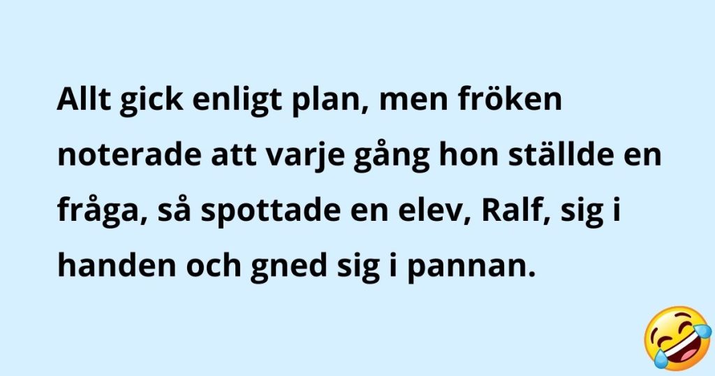Allt gick som planerat, men läraren lade märke till att varje gång hon ställde en fråga, så spottade en elev, Ralf, i handen och gned sig på pannan.