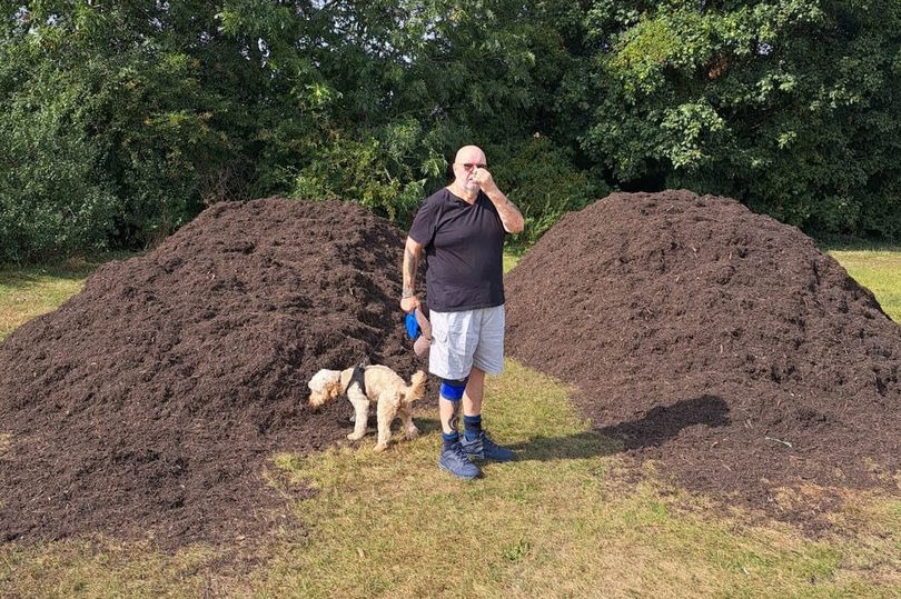 ”Vi vet inte hur länge det kommer att vara här men de har precis tippat omkring 20 ton kompost utanför vårt hem. Det är chockerande. Lukten är fruktansvärd och det finns tusentals flugor också. Även i den här värmen kan vi inte öppna våra fönster”.