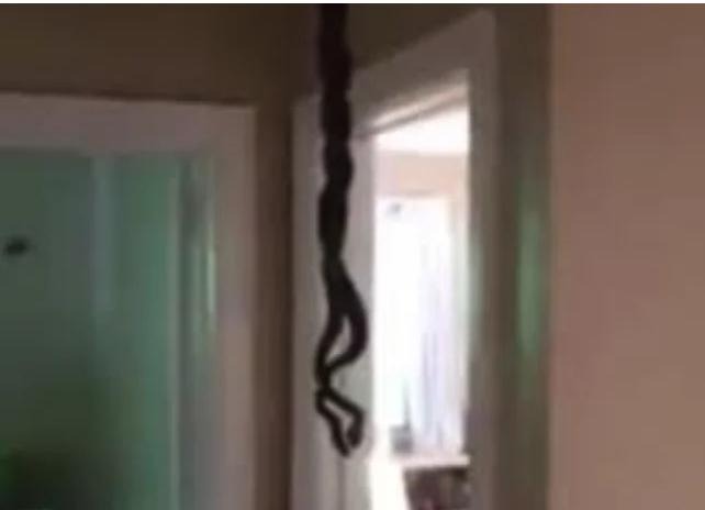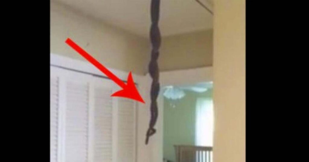 Mannen kom hem från jobbet och trodde att det var en vanlig dag, men när han hittade den här hängande i vardagsrumstaket började han skrika högt!