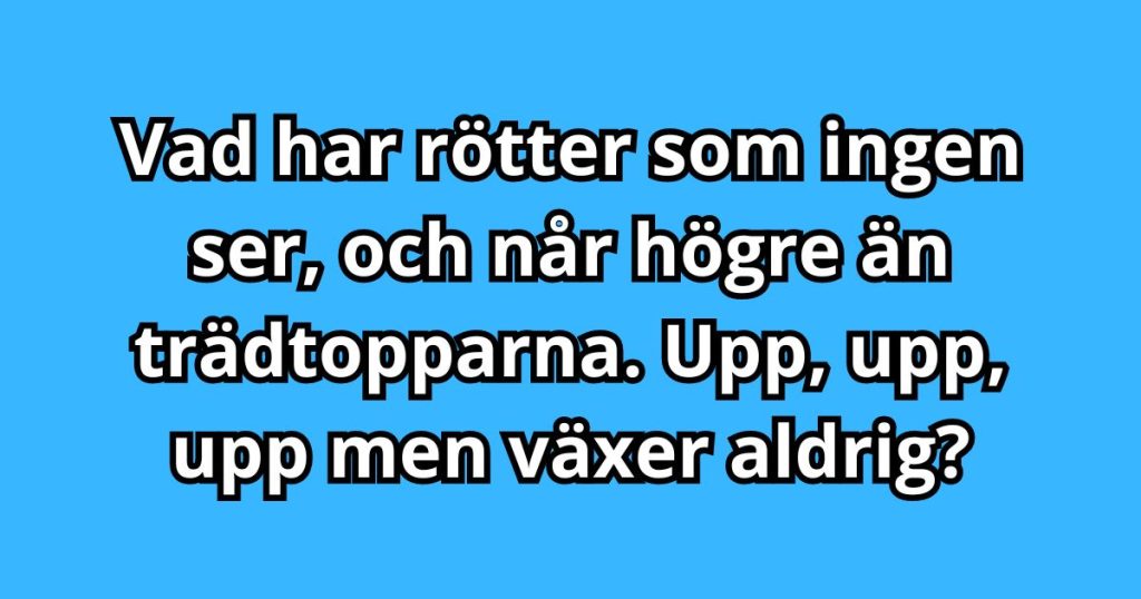 ”Vad har rötter som ingen ser, och når högre än trädtopparna. Upp, upp, upp men växer aldrig?”