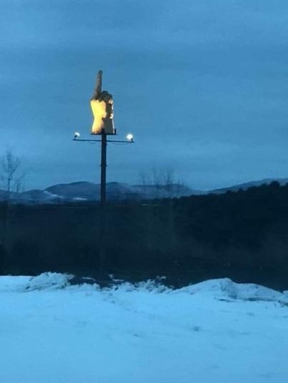 Skulpturen väckte så mycket uppmärksamhet att musikern Robert Richie, aka Kid Rock, gav Pelkeys motorsågskonstnär Charlie O’Brien från Waterbury Center i uppdrag att skapa en åt honom.
