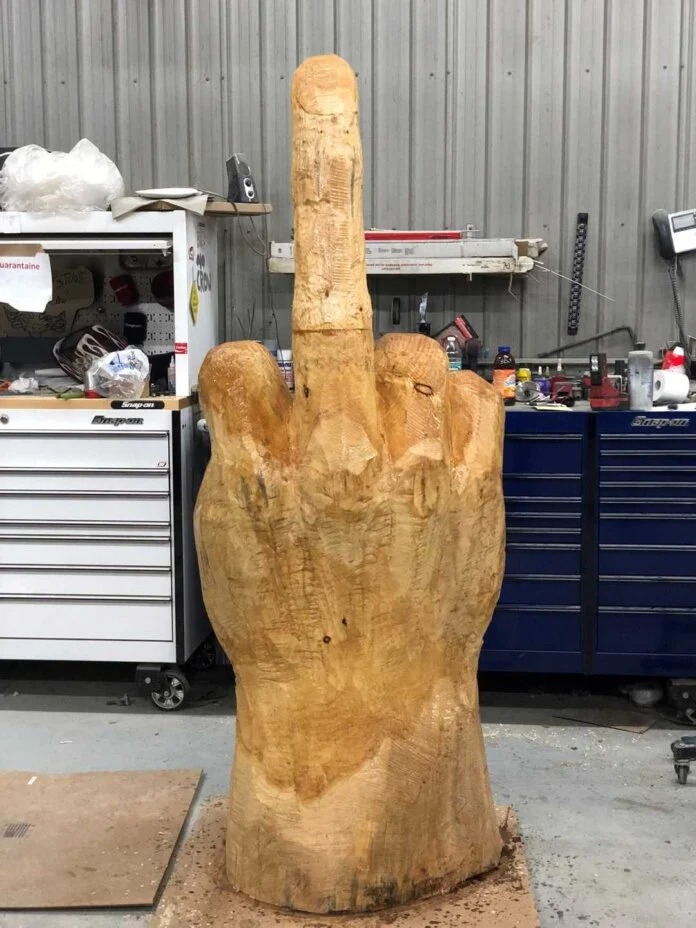 I sin frustration och irritation över den juridiska kampen bestämde sig Ted för att uttrycka sitt extrema missnöje på ett kreativt, och kanske något vulgärt sätt. Hans motorsågsristade ”fan dig!” till stadens tjänstemän blev snabbt viralt och lockade nationell mediebevakning, enligt burlingtonfreepress.