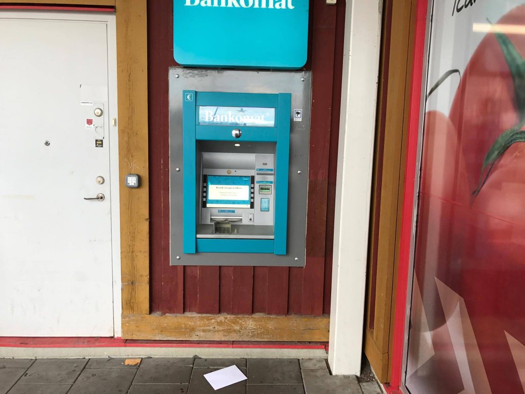 Jag tog ut mina pengar från bankomaten som jag skulle handla mat för och gick sedan in på banken. Jag berättade för kvinnan vid informationsdisken om att jag hittade ett kuvert med pengar i nedanför bankomaten och sträckte sedan fram kuvertet till henne.
