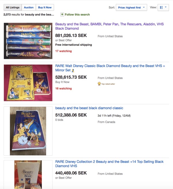 Många kanske har sålt eller till och med slängt gamla VHS-klassiker, men för den som sparat på dessa kan de med lite tur vara guld värda. Här ser ni en bild från Ebay.
