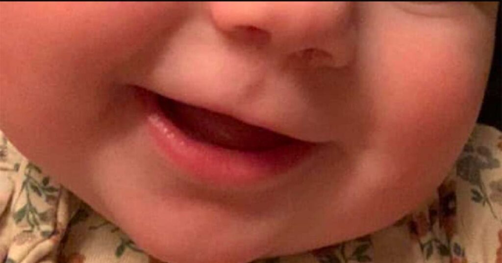 Parets då sju månader gamla dotter var också där och mamman berättar att småbarnet var på väg att få sin andra tand.