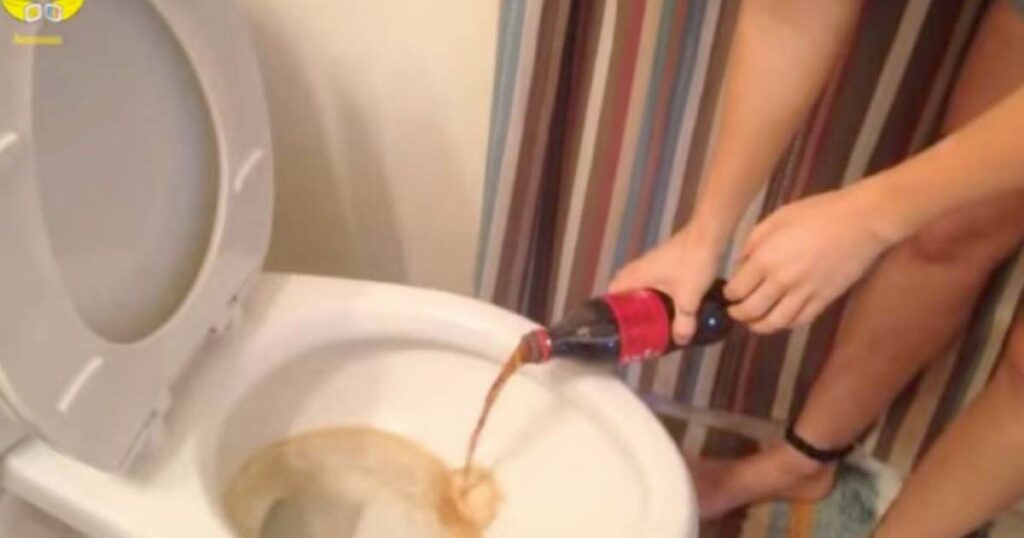 Du kan se videon nedan där hon häller cola i toaletten för att rengöra den.