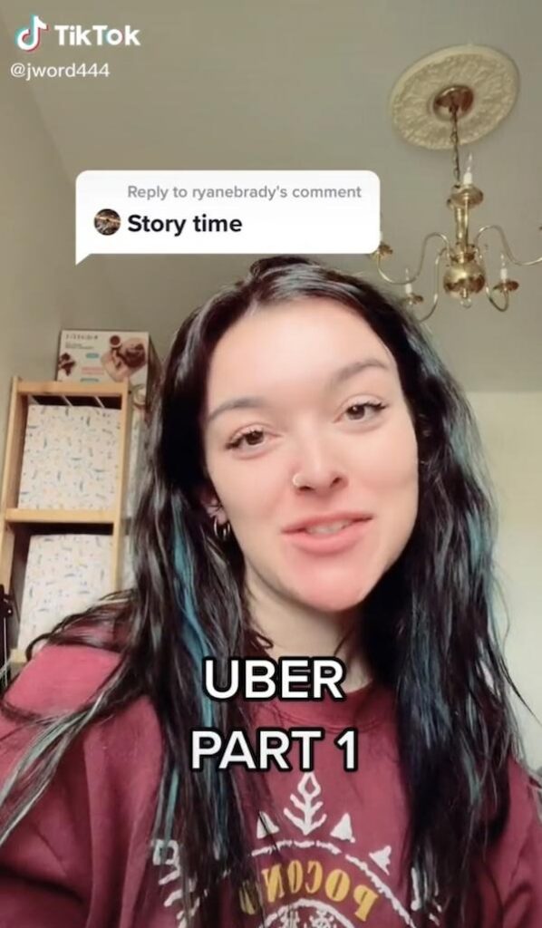 Jen, som har delat sin historia på TikTok, har avslöjat att hon plockade upp två passagerare som visade sig vara hennes pojkvän och en annan kvinna.